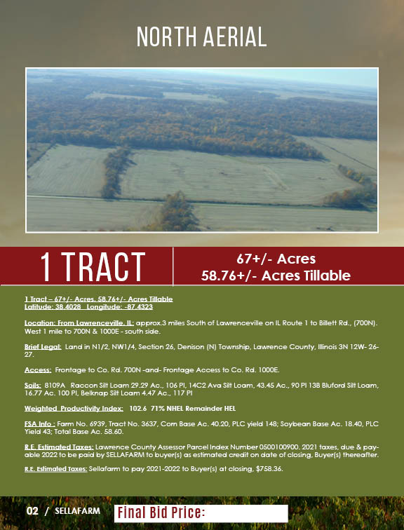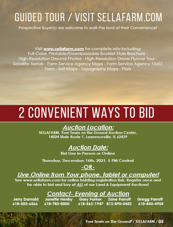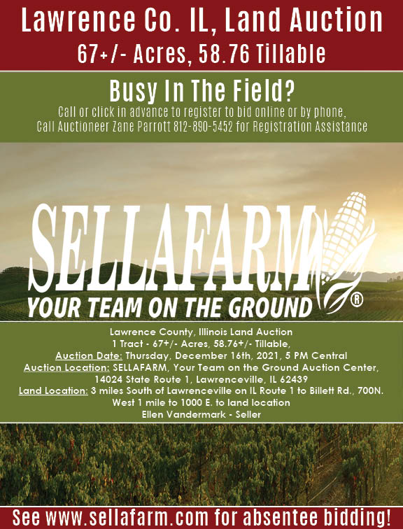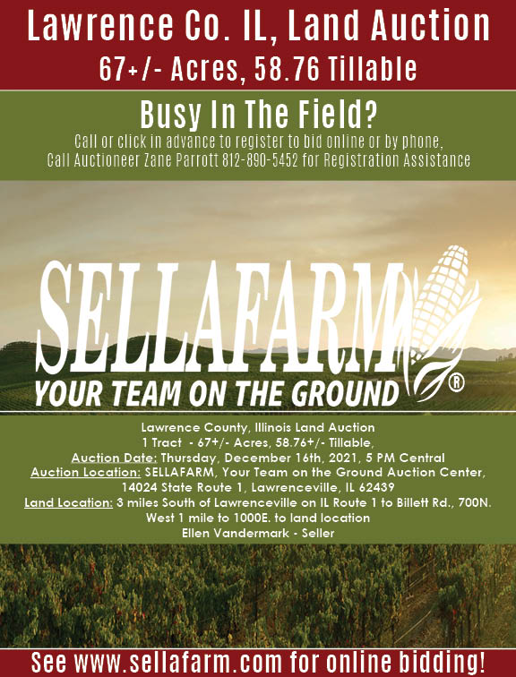 Auction Location : SELLAFARM, Your Team on the Ground Auction Center, 14024 State Route 1, Lawrenceville, IL. 62439